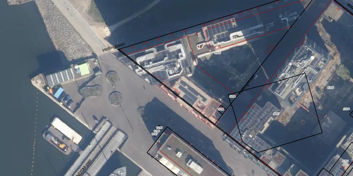 Het perceel waarop NDSM-kade 12 staat heeft een oppervlakte van 3402 m². Dit is een zeer groot perceel. De perceeloppervlakte wordt geregistreerd door het Kadaster. Gedetailleerde informatie over de maten van dit perceel kunt u vinden in het rapport Kadastrale kaart met maatvoering van NDSM-kade 12.