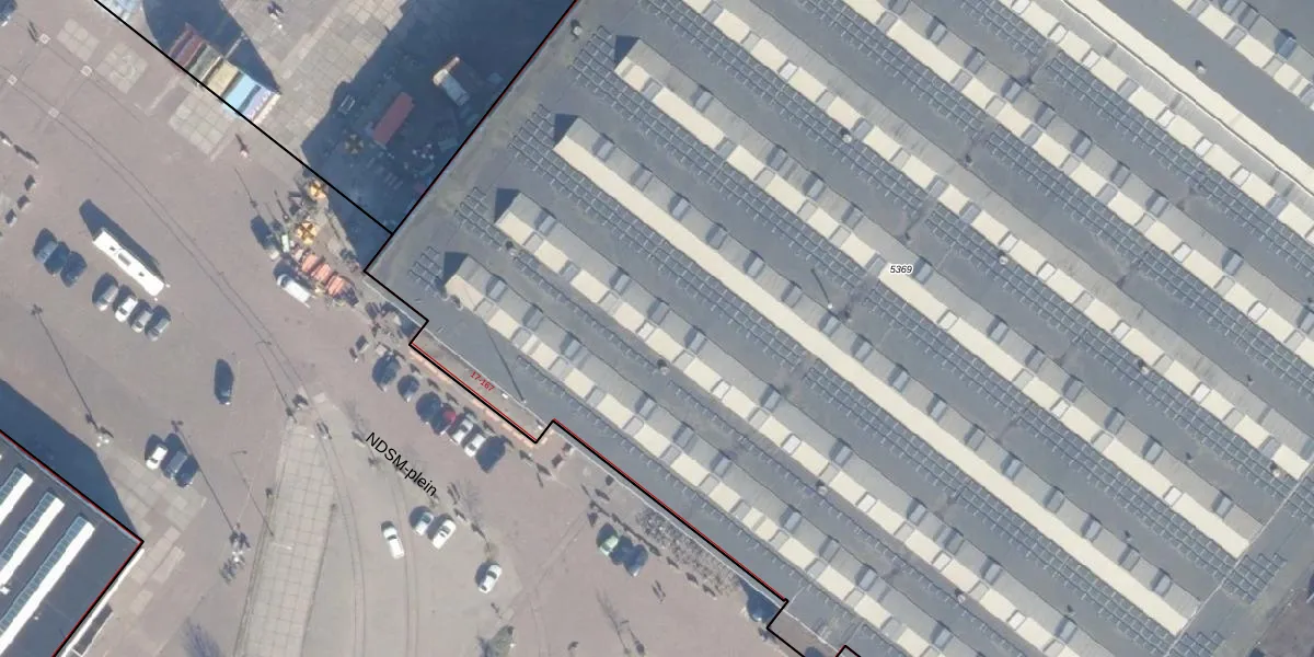 Het perceel waarop NDSM-plein 37 staat heeft een oppervlakte van 2,1 ha. Dit is een zeer groot perceel. De perceeloppervlakte wordt geregistreerd door het Kadaster. Gedetailleerde informatie over de maten van dit perceel kunt u vinden in het rapport Kadastrale kaart met maatvoering van NDSM-plein 37.