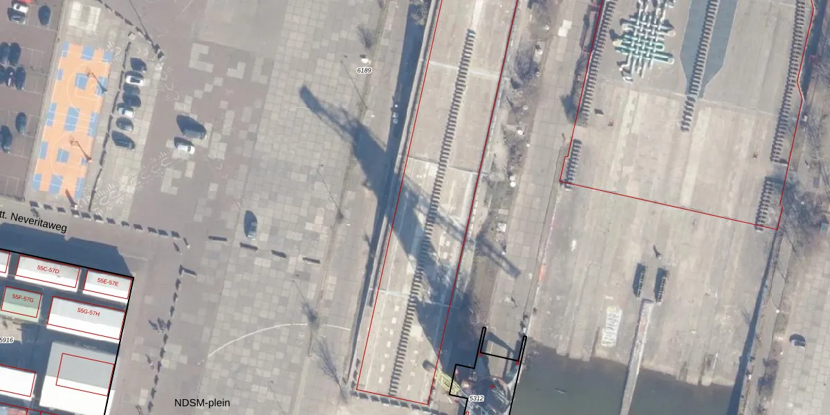 Het perceel waarop NDSM-plein 76-L staat heeft een oppervlakte van 10,8 ha. Dit is een zeer groot perceel. De perceeloppervlakte wordt geregistreerd door het Kadaster. Gedetailleerde informatie over de maten van dit perceel kunt u vinden in het rapport Kadastrale kaart met maatvoering van NDSM-plein 76-L.