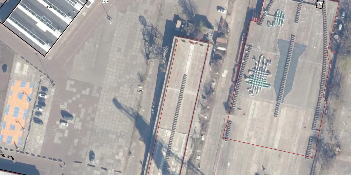 Het perceel waarop NDSM-plein 76-R staat heeft een oppervlakte van 10,8 ha. Dit is een zeer groot perceel. De perceeloppervlakte wordt geregistreerd door het Kadaster. Gedetailleerde informatie over de maten van dit perceel kunt u vinden in het rapport Kadastrale kaart met maatvoering van NDSM-plein 76-R.