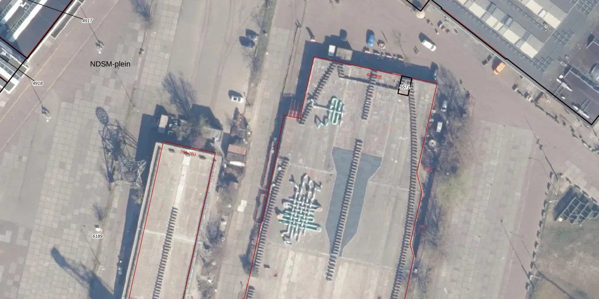 Het perceel waarop NDSM-plein 82-B staat heeft een oppervlakte van 10,8 ha. Dit is een zeer groot perceel. De perceeloppervlakte wordt geregistreerd door het Kadaster. Gedetailleerde informatie over de maten van dit perceel kunt u vinden in het rapport Kadastrale kaart met maatvoering van NDSM-plein 82-B.