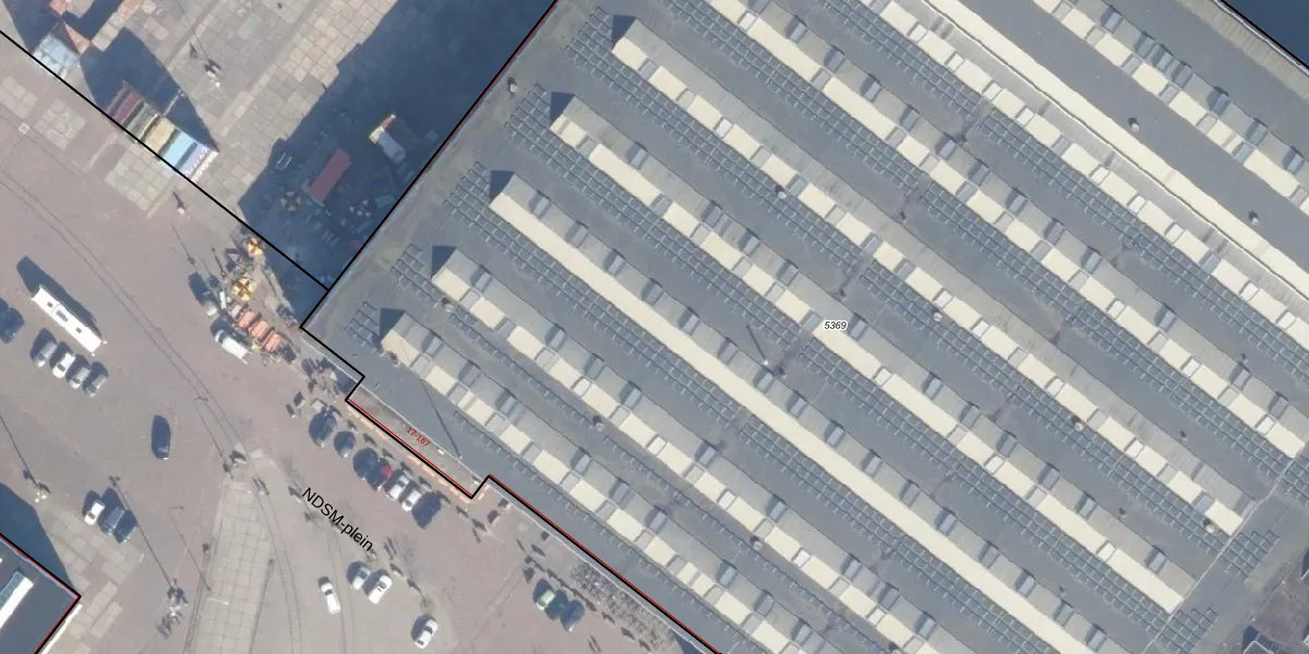 Het perceel waarop NDSM-plein 97 staat heeft een oppervlakte van 2,1 ha. Dit is een zeer groot perceel. De perceeloppervlakte wordt geregistreerd door het Kadaster. Gedetailleerde informatie over de maten van dit perceel kunt u vinden in het rapport Kadastrale kaart met maatvoering van NDSM-plein 97.