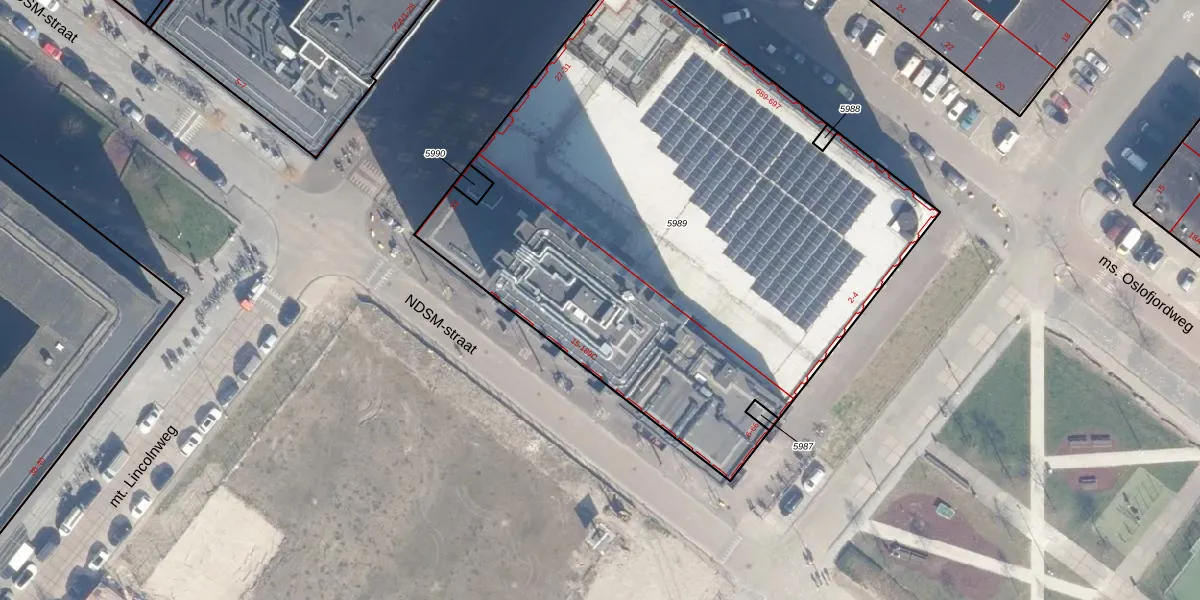 Het perceel waarop NDSM-straat 39 staat heeft een oppervlakte van 3755 m². Dit is een zeer groot perceel. De perceeloppervlakte wordt geregistreerd door het Kadaster. Gedetailleerde informatie over de maten van dit perceel kunt u vinden in het rapport Kadastrale kaart met maatvoering van NDSM-straat 39.