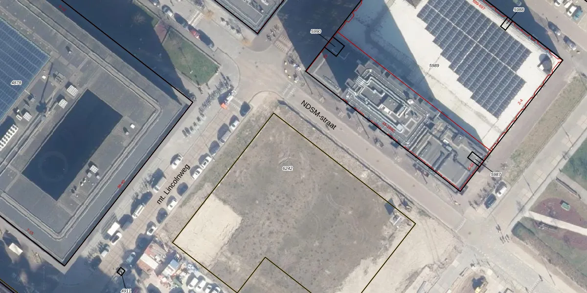 Het perceel waarop NDSM-straat 40 staat heeft een oppervlakte van 2947 m². Dit is een zeer groot perceel. De perceeloppervlakte wordt geregistreerd door het Kadaster. Gedetailleerde informatie over de maten van dit perceel kunt u vinden in het rapport Kadastrale kaart met maatvoering van NDSM-straat 40.