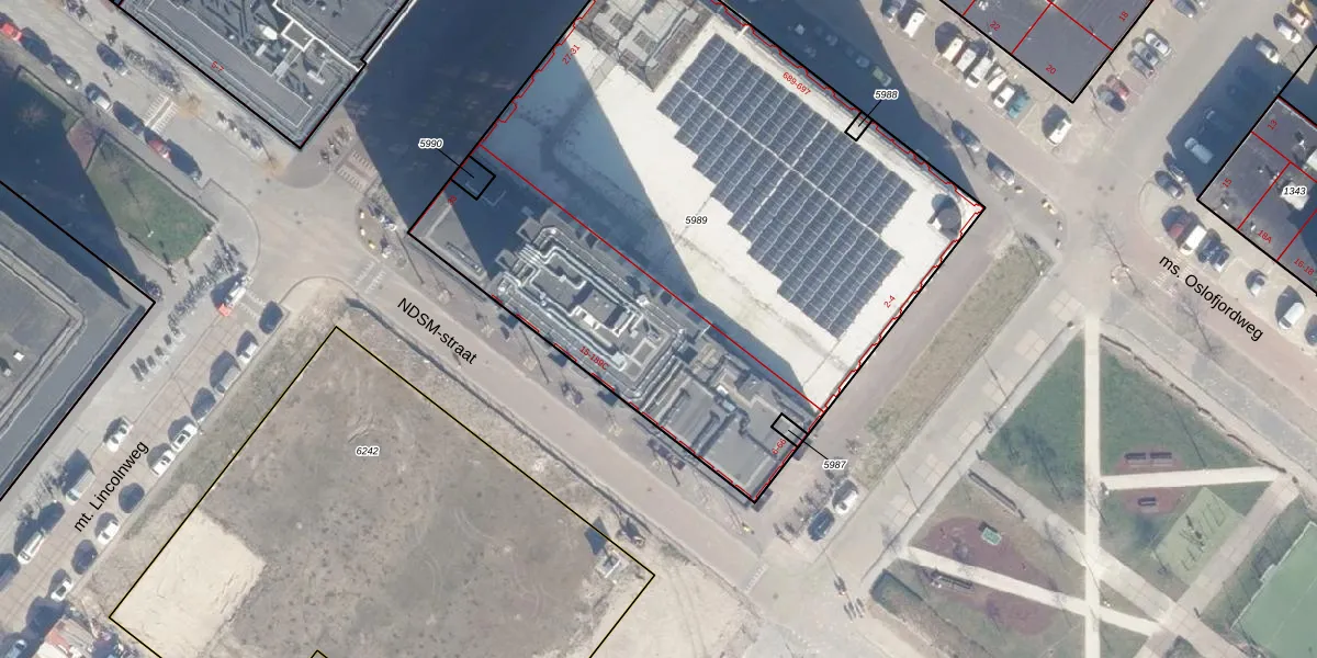 Het perceel waarop NDSM-straat 67 staat heeft een oppervlakte van 3755 m². Dit is een zeer groot perceel. De perceeloppervlakte wordt geregistreerd door het Kadaster. Gedetailleerde informatie over de maten van dit perceel kunt u vinden in het rapport Kadastrale kaart met maatvoering van NDSM-straat 67.