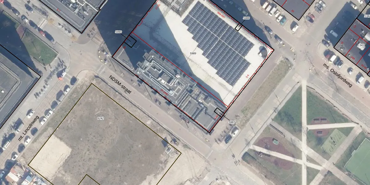 Het perceel waarop NDSM-straat 89 staat heeft een oppervlakte van 3755 m². Dit is een zeer groot perceel. De perceeloppervlakte wordt geregistreerd door het Kadaster. Gedetailleerde informatie over de maten van dit perceel kunt u vinden in het rapport Kadastrale kaart met maatvoering van NDSM-straat 89.