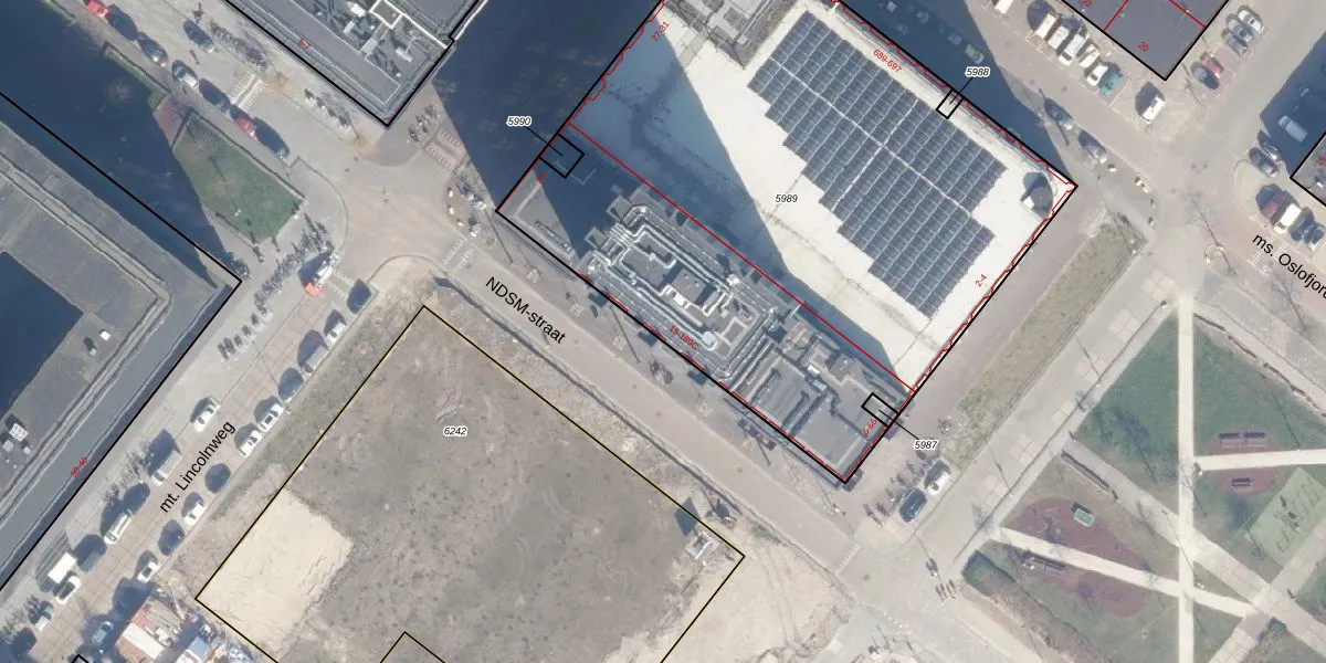 Het perceel waarop NDSM-straat 97 staat heeft een oppervlakte van 3755 m². Dit is een zeer groot perceel. De perceeloppervlakte wordt geregistreerd door het Kadaster. Gedetailleerde informatie over de maten van dit perceel kunt u vinden in het rapport Kadastrale kaart met maatvoering van NDSM-straat 97.