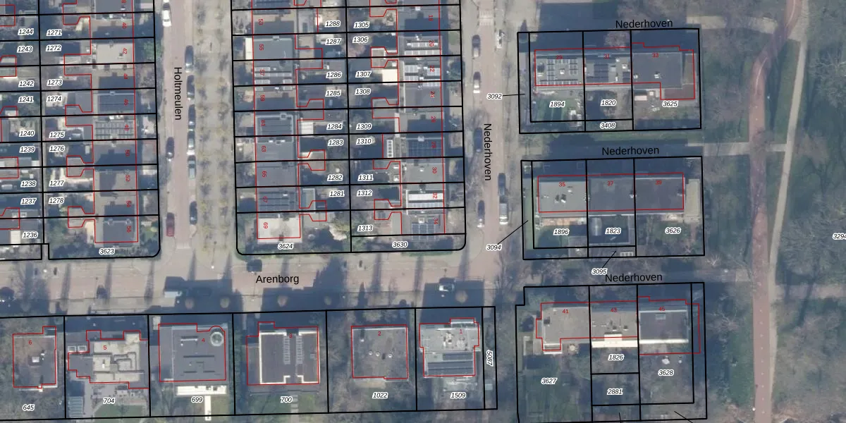 Gebruik de zoekbalk of klik op een perceel voor informatie over de adressen binnen dit perceel.