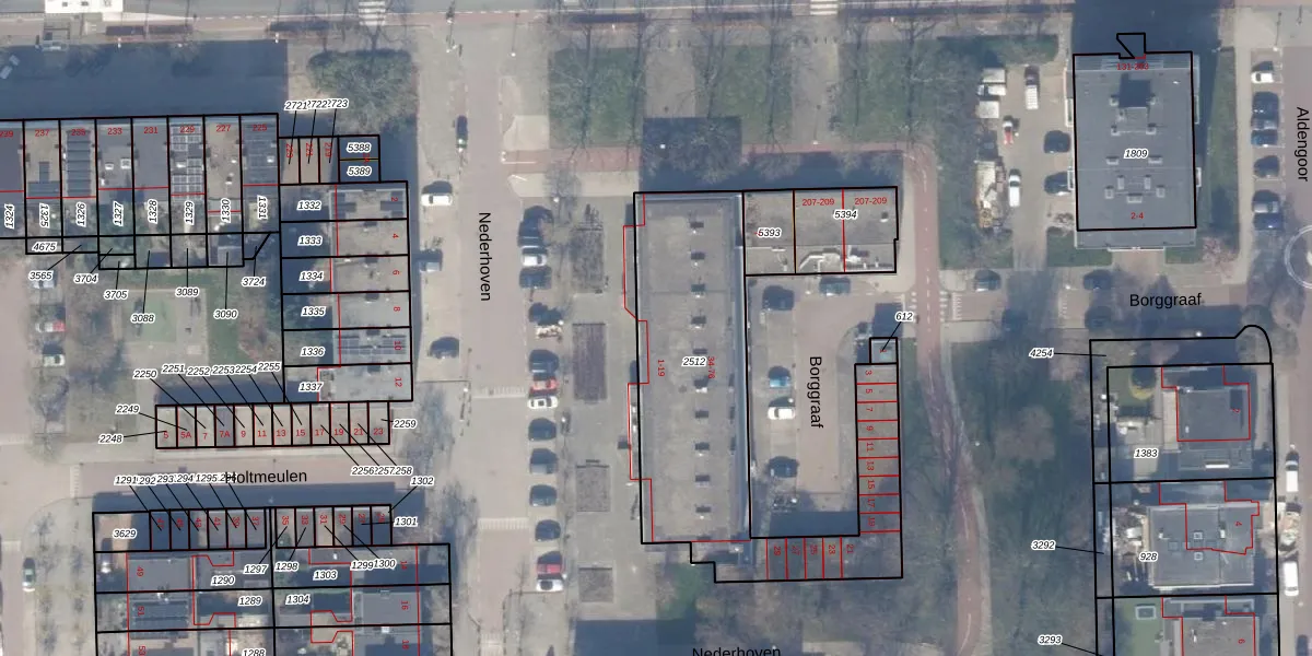 Nederhoven 9 is gelegen op kadastraal perceel ASD30AK2512. Deze kadastrale aanduiding is uniek en wordt gebruikt door het Kadaster om eigendomsrechten en andere zakelijke rechten vast te leggen. Het perceel maakt onderdeel uit van de kadastrale gemeente Amsterdam.