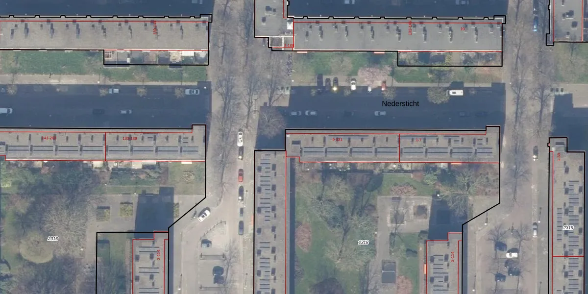 Nedersticht 101 is gelegen op kadastraal perceel ASD30AK2318. Deze kadastrale aanduiding is uniek en wordt gebruikt door het Kadaster om eigendomsrechten en andere zakelijke rechten vast te leggen. Het perceel maakt onderdeel uit van de kadastrale gemeente Amsterdam.