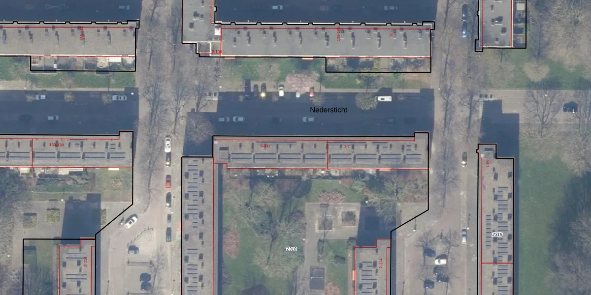 Nedersticht 13 is gelegen op kadastraal perceel ASD30AK2318. Deze kadastrale aanduiding is uniek en wordt gebruikt door het Kadaster om eigendomsrechten en andere zakelijke rechten vast te leggen. Het perceel maakt onderdeel uit van de kadastrale gemeente Amsterdam.