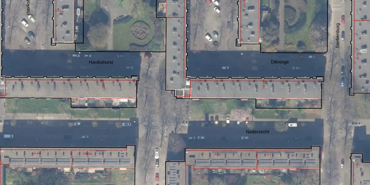 Het perceel waarop Nedersticht 16 staat heeft een oppervlakte van 2121 m². Dit is een zeer groot perceel. De perceeloppervlakte wordt geregistreerd door het Kadaster. Gedetailleerde informatie over de maten van dit perceel kunt u vinden in het rapport Kadastrale kaart met maatvoering van Nedersticht 16.