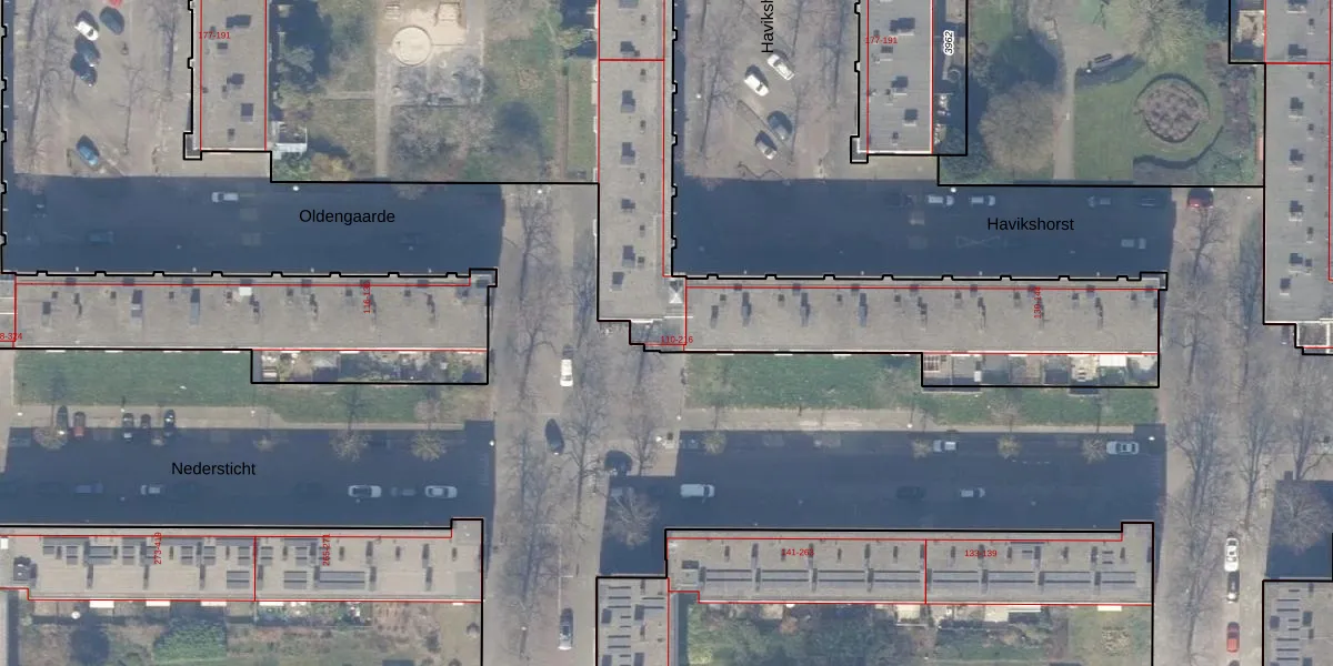 Het perceel waarop Nedersticht 182 staat heeft een oppervlakte van 5709 m². Dit is een zeer groot perceel. De perceeloppervlakte wordt geregistreerd door het Kadaster. Gedetailleerde informatie over de maten van dit perceel kunt u vinden in het rapport Kadastrale kaart met maatvoering van Nedersticht 182.