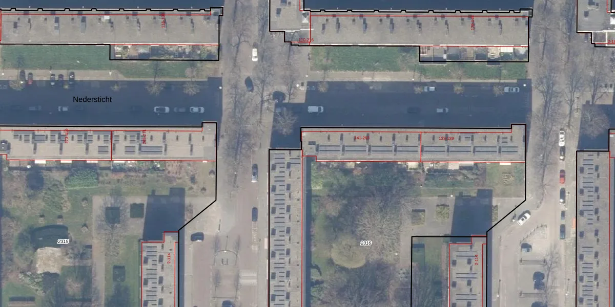Nedersticht 259 is gelegen op kadastraal perceel ASD30AK2316. Deze kadastrale aanduiding is uniek en wordt gebruikt door het Kadaster om eigendomsrechten en andere zakelijke rechten vast te leggen. Het perceel maakt onderdeel uit van de kadastrale gemeente Amsterdam.