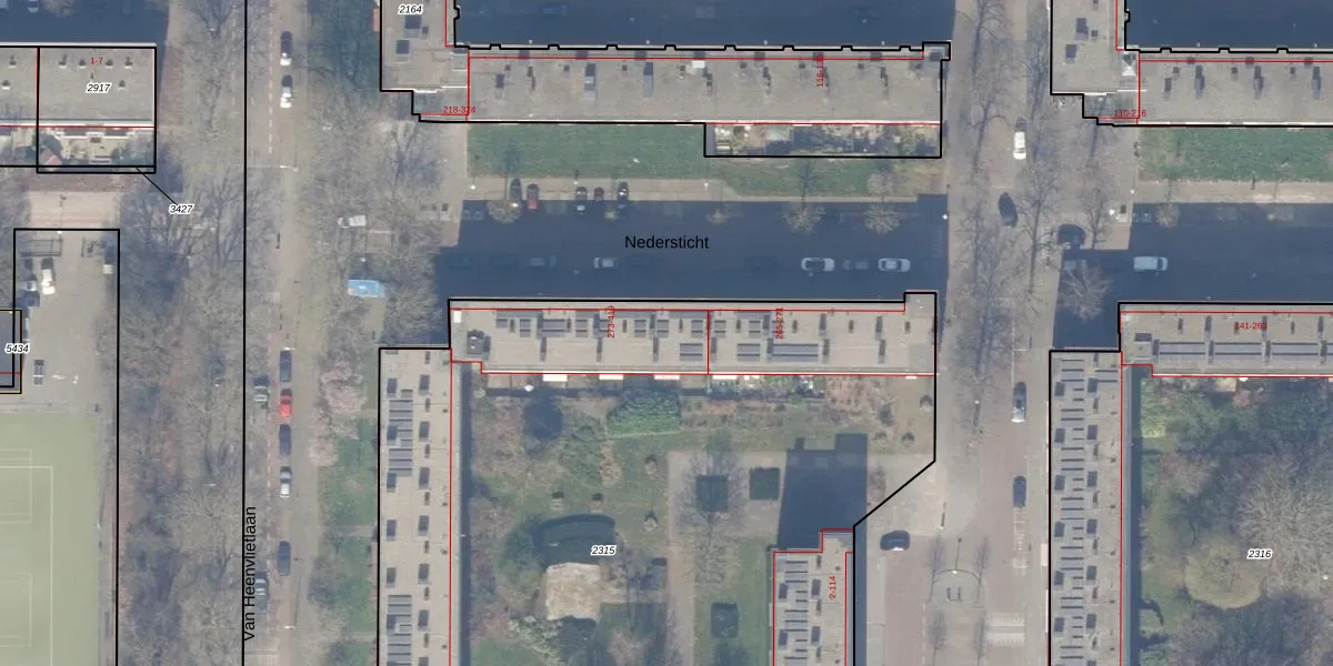 Nedersticht 275 is gelegen op kadastraal perceel ASD30AK2315. Deze kadastrale aanduiding is uniek en wordt gebruikt door het Kadaster om eigendomsrechten en andere zakelijke rechten vast te leggen. Het perceel maakt onderdeel uit van de kadastrale gemeente Amsterdam.