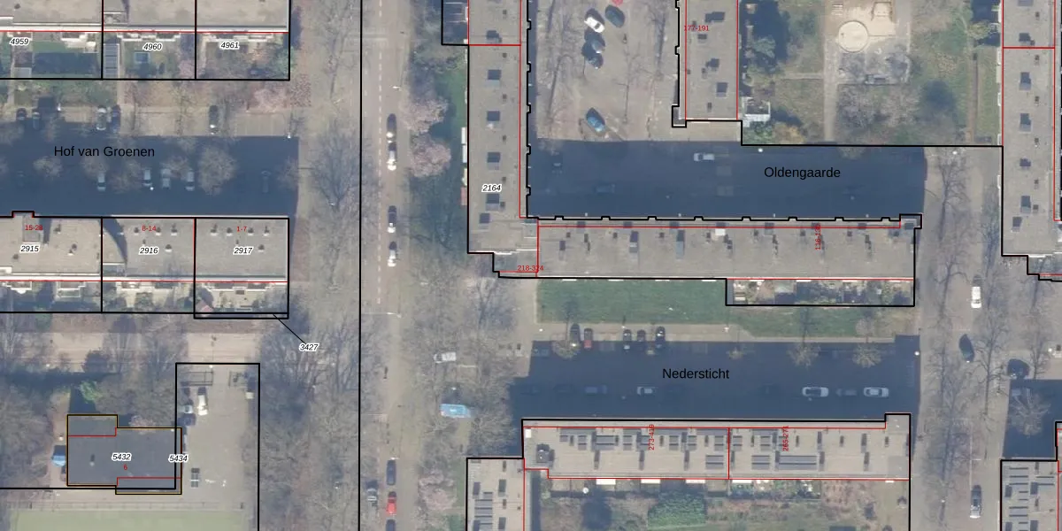Het perceel waarop Nedersticht 318 staat heeft een oppervlakte van 2106 m². Dit is een zeer groot perceel. De perceeloppervlakte wordt geregistreerd door het Kadaster. Gedetailleerde informatie over de maten van dit perceel kunt u vinden in het rapport Kadastrale kaart met maatvoering van Nedersticht 318.