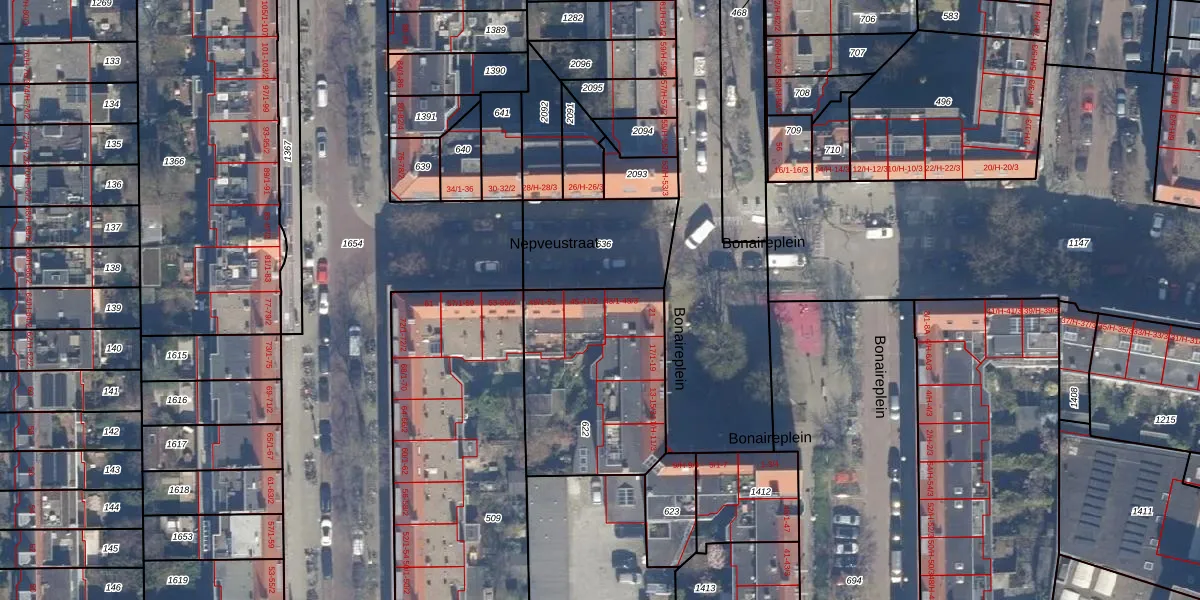 Het perceel waarop Nepveustraat 45 staat heeft een oppervlakte van 722 m². Dit is een groot perceel. De perceeloppervlakte wordt geregistreerd door het Kadaster. Gedetailleerde informatie over de maten van dit perceel kunt u vinden in het rapport Kadastrale kaart met maatvoering van Nepveustraat 45.