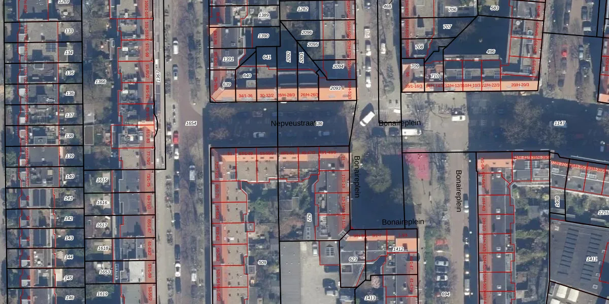 Het perceel waarop Nepveustraat 47-1 staat heeft een oppervlakte van 722 m². Dit is een groot perceel. De perceeloppervlakte wordt geregistreerd door het Kadaster. Gedetailleerde informatie over de maten van dit perceel kunt u vinden in het rapport Kadastrale kaart met maatvoering van Nepveustraat 47-1.