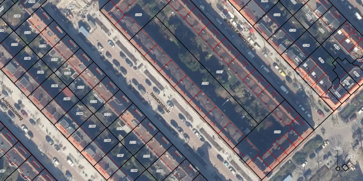 Newtonstraat 24-H is gelegen op kadastraal perceel WTG02B2318. Deze kadastrale aanduiding is uniek en wordt gebruikt door het Kadaster om eigendomsrechten en andere zakelijke rechten vast te leggen. Het perceel maakt onderdeel uit van de kadastrale gemeente Watergraafsmeer.