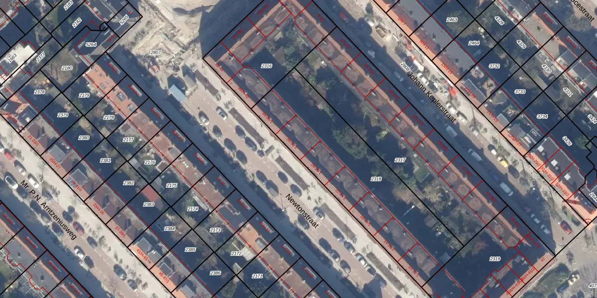 Newtonstraat 30 is gelegen op kadastraal perceel WTG02B2318. Deze kadastrale aanduiding is uniek en wordt gebruikt door het Kadaster om eigendomsrechten en andere zakelijke rechten vast te leggen. Het perceel maakt onderdeel uit van de kadastrale gemeente Watergraafsmeer.