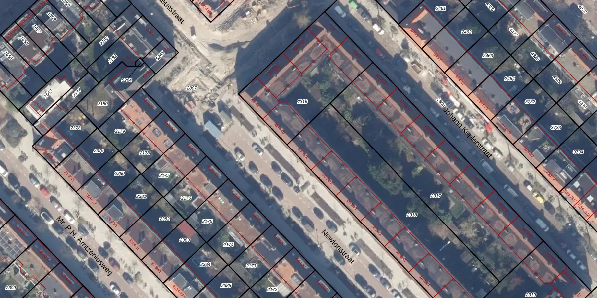Newtonstraat 36-H is gelegen op kadastraal perceel WTG02B2318. Deze kadastrale aanduiding is uniek en wordt gebruikt door het Kadaster om eigendomsrechten en andere zakelijke rechten vast te leggen. Het perceel maakt onderdeel uit van de kadastrale gemeente Watergraafsmeer.