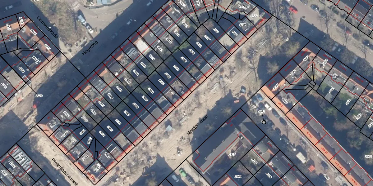 Het perceel waarop Newtonstraat 83-H staat heeft een oppervlakte van 134 m². Dit is een middelgroot perceel. De perceeloppervlakte wordt geregistreerd door het Kadaster. Gedetailleerde informatie over de maten van dit perceel kunt u vinden in het rapport Kadastrale kaart met maatvoering van Newtonstraat 83-H.