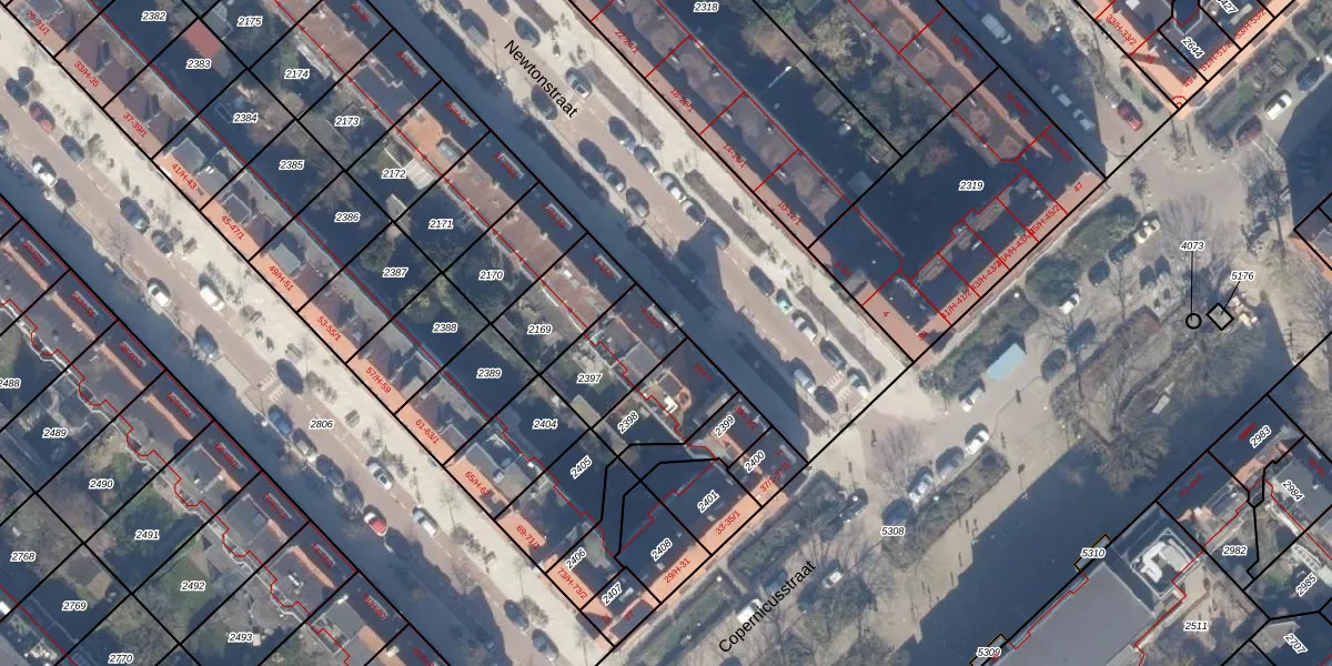 Newtonstraat 9 is gelegen op kadastraal perceel WTG02B2397. Deze kadastrale aanduiding is uniek en wordt gebruikt door het Kadaster om eigendomsrechten en andere zakelijke rechten vast te leggen. Het perceel maakt onderdeel uit van de kadastrale gemeente Watergraafsmeer.