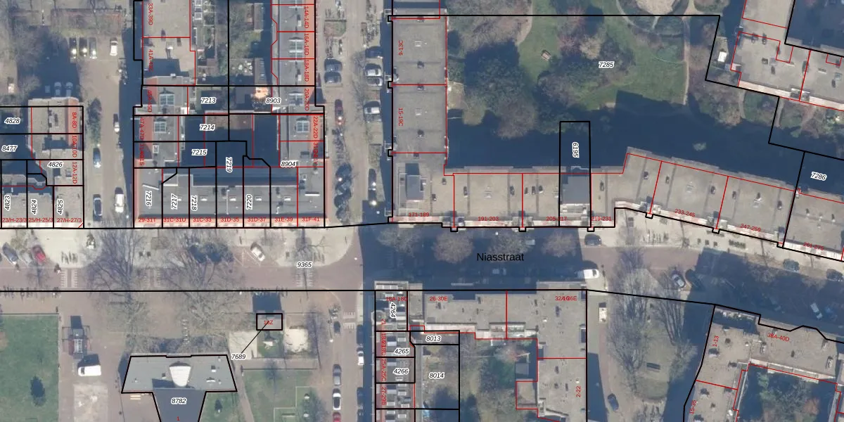 Het perceel waarop Niasstraat 187 staat heeft een oppervlakte van 4200 m². Dit is een zeer groot perceel. De perceeloppervlakte wordt geregistreerd door het Kadaster. Gedetailleerde informatie over de maten van dit perceel kunt u vinden in het rapport Kadastrale kaart met maatvoering van Niasstraat 187.
