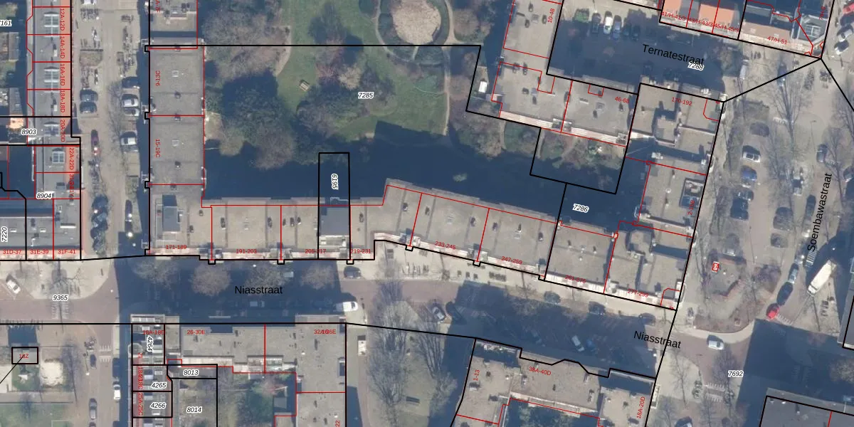 Het perceel waarop Niasstraat 233 staat heeft een oppervlakte van 4200 m². Dit is een zeer groot perceel. De perceeloppervlakte wordt geregistreerd door het Kadaster. Gedetailleerde informatie over de maten van dit perceel kunt u vinden in het rapport Kadastrale kaart met maatvoering van Niasstraat 233.
