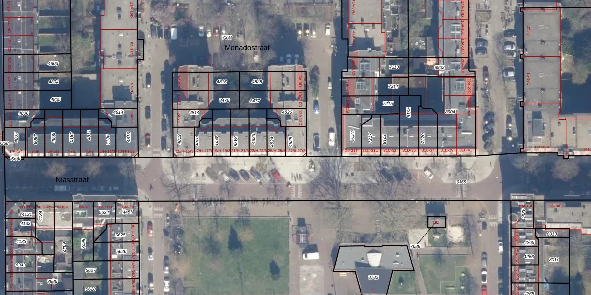 Het perceel waarop Niasstraat 27-H staat heeft een oppervlakte van 73 m². Dit is een klein perceel. De perceeloppervlakte wordt geregistreerd door het Kadaster. Gedetailleerde informatie over de maten van dit perceel kunt u vinden in het rapport Kadastrale kaart met maatvoering van Niasstraat 27-H.