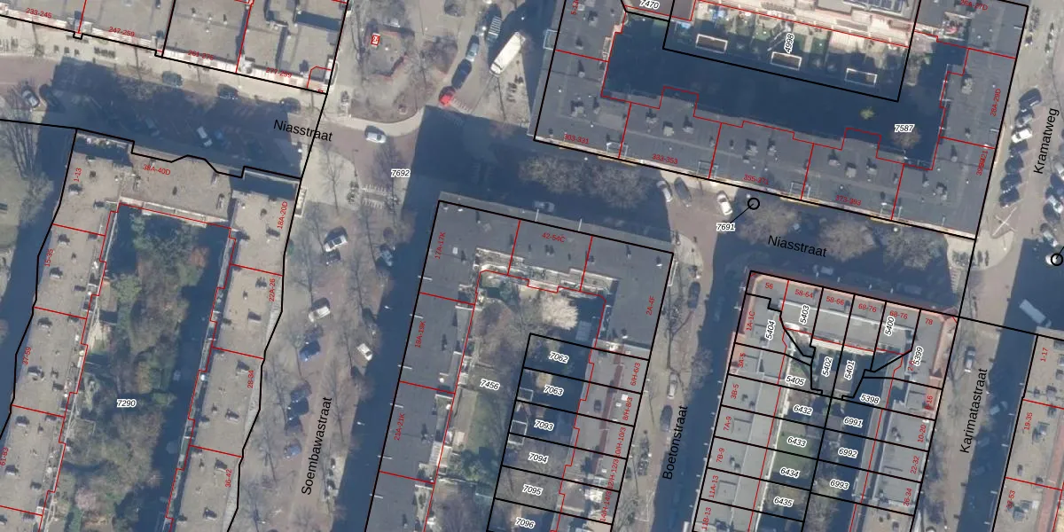 Het perceel waarop Niasstraat 52 staat heeft een oppervlakte van 2212 m². Dit is een zeer groot perceel. De perceeloppervlakte wordt geregistreerd door het Kadaster. Gedetailleerde informatie over de maten van dit perceel kunt u vinden in het rapport Kadastrale kaart met maatvoering van Niasstraat 52.