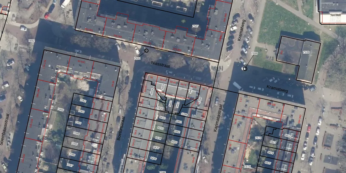Niasstraat 66 is gelegen op kadastraal perceel ASD19W5402. Deze kadastrale aanduiding is uniek en wordt gebruikt door het Kadaster om eigendomsrechten en andere zakelijke rechten vast te leggen. Het perceel maakt onderdeel uit van de kadastrale gemeente Amsterdam.