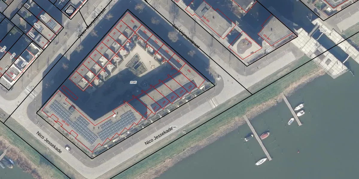 Nico Jessekade 253 is gelegen op kadastraal perceel ASD41AU2045. Deze kadastrale aanduiding is uniek en wordt gebruikt door het Kadaster om eigendomsrechten en andere zakelijke rechten vast te leggen. Het perceel maakt onderdeel uit van de kadastrale gemeente Amsterdam.