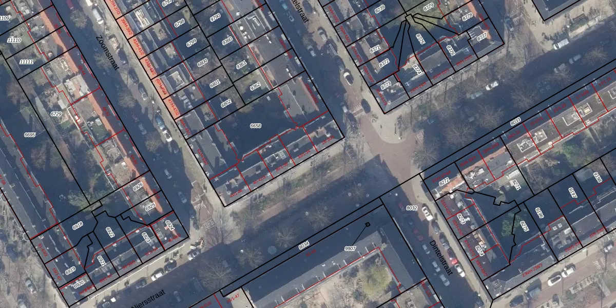 Het adres ligt op het perceel ASD18-V-6658, dat zich in de kadastrale gemeente Amsterdam bevindt. Het perceel is met 1125 m² relatief groot. Het gemiddelde ligt in de kadastrale gemeente Amsterdam op 558,8 m². Het grootste perceel in de kadastrale gemeente is 12,5 ha. Het kleinste perceel heeft een oppervlakte van 0 m². Op het perceel liggen in totaal 32 adressen. In de Basisregistratie Kadaster (BRK) werden de grenzen van het perceel geregistreerd op 08-11-2006.