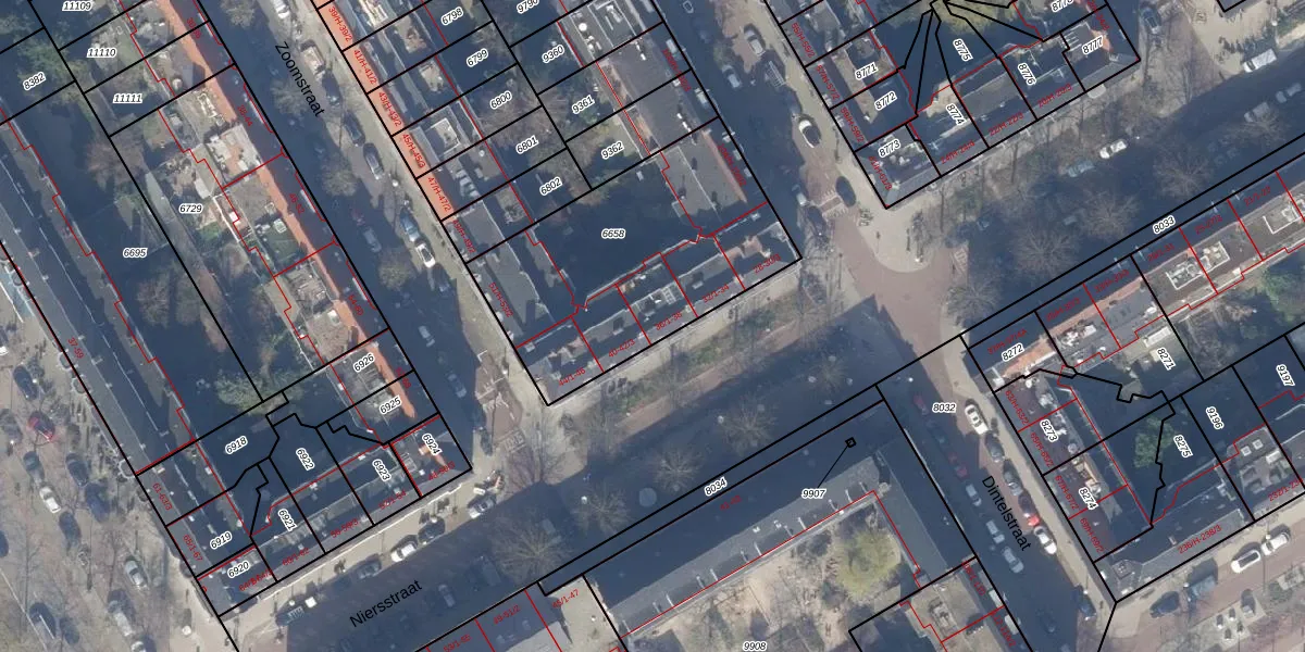 Niersstraat 38 is gelegen op kadastraal perceel ASD18V6658. Deze kadastrale aanduiding is uniek en wordt gebruikt door het Kadaster om eigendomsrechten en andere zakelijke rechten vast te leggen. Het perceel maakt onderdeel uit van de kadastrale gemeente Amsterdam.