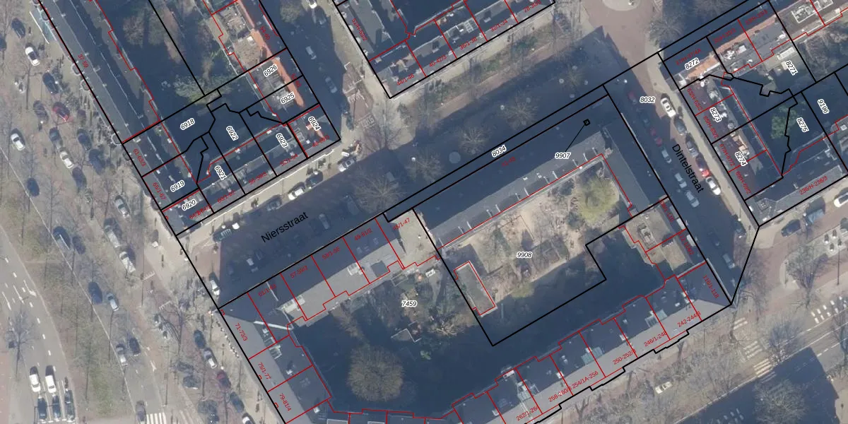 Niersstraat 43 is gelegen op kadastraal perceel ASD18V9908. Deze kadastrale aanduiding is uniek en wordt gebruikt door het Kadaster om eigendomsrechten en andere zakelijke rechten vast te leggen. Het perceel maakt onderdeel uit van de kadastrale gemeente Amsterdam.