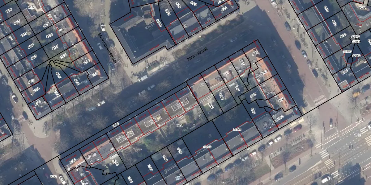 Niersstraat 9 is gelegen op kadastraal perceel ASD18V7004. Deze kadastrale aanduiding is uniek en wordt gebruikt door het Kadaster om eigendomsrechten en andere zakelijke rechten vast te leggen. Het perceel maakt onderdeel uit van de kadastrale gemeente Amsterdam.