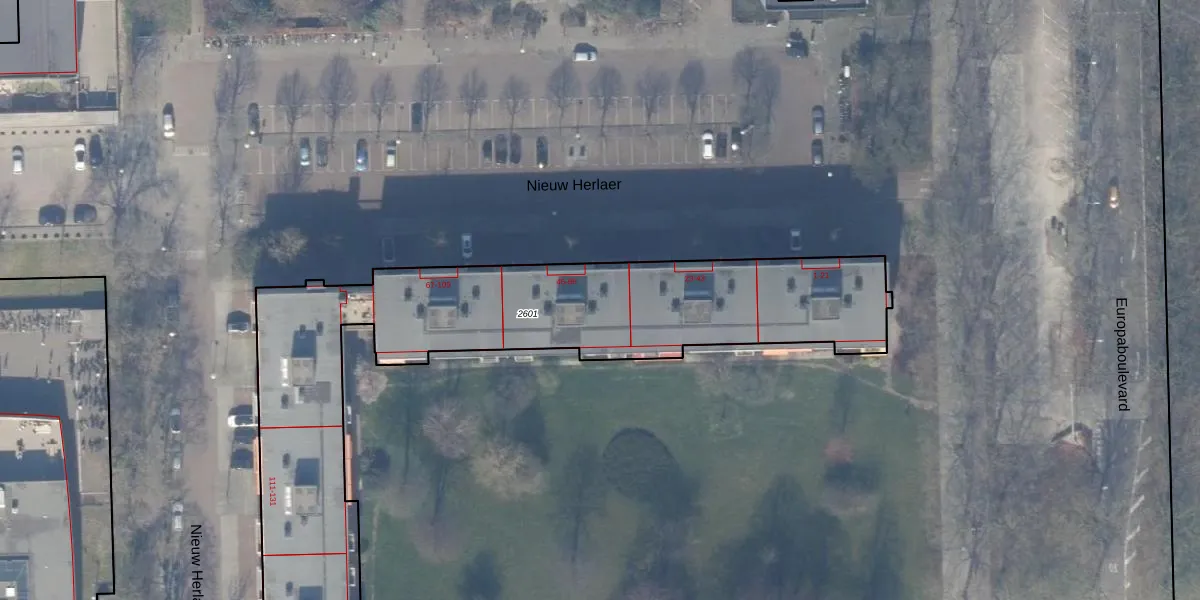 Nieuw Herlaer 49 is gelegen op kadastraal perceel ASD30AK2601. Deze kadastrale aanduiding is uniek en wordt gebruikt door het Kadaster om eigendomsrechten en andere zakelijke rechten vast te leggen. Het perceel maakt onderdeel uit van de kadastrale gemeente Amsterdam.