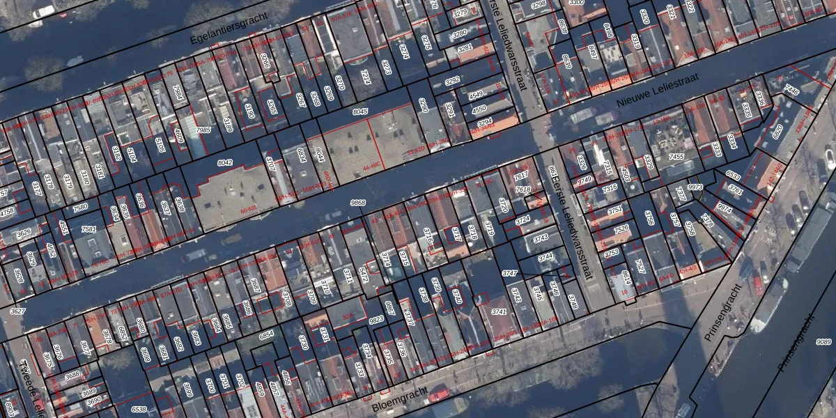 Het perceel waarop Nieuwe Leliestraat 39-A staat heeft een oppervlakte van 92 m². Dit is een klein perceel. De perceeloppervlakte wordt geregistreerd door het Kadaster. Gedetailleerde informatie over de maten van dit perceel kunt u vinden in het rapport Kadastrale kaart met maatvoering van Nieuwe Leliestraat 39-A.