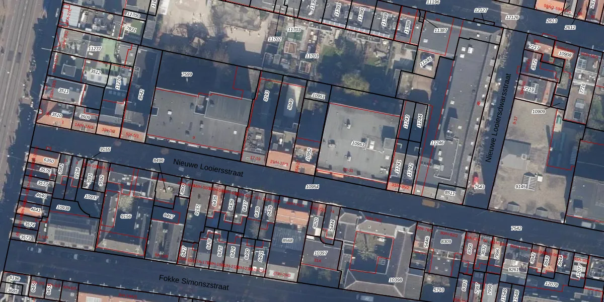 Nieuwe Looiersstraat 25-B is gelegen op kadastraal perceel ASD06I10952. Deze kadastrale aanduiding is uniek en wordt gebruikt door het Kadaster om eigendomsrechten en andere zakelijke rechten vast te leggen. Het perceel maakt onderdeel uit van de kadastrale gemeente Amsterdam.
