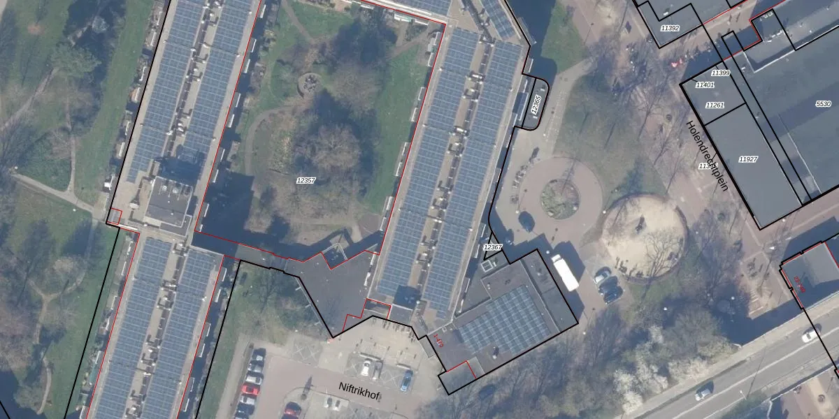 Het perceel waarop Niftrikhof 207 staat heeft een oppervlakte van 9513 m². Dit is een zeer groot perceel. De perceeloppervlakte wordt geregistreerd door het Kadaster. Gedetailleerde informatie over de maten van dit perceel kunt u vinden in het rapport Kadastrale kaart met maatvoering van Niftrikhof 207.