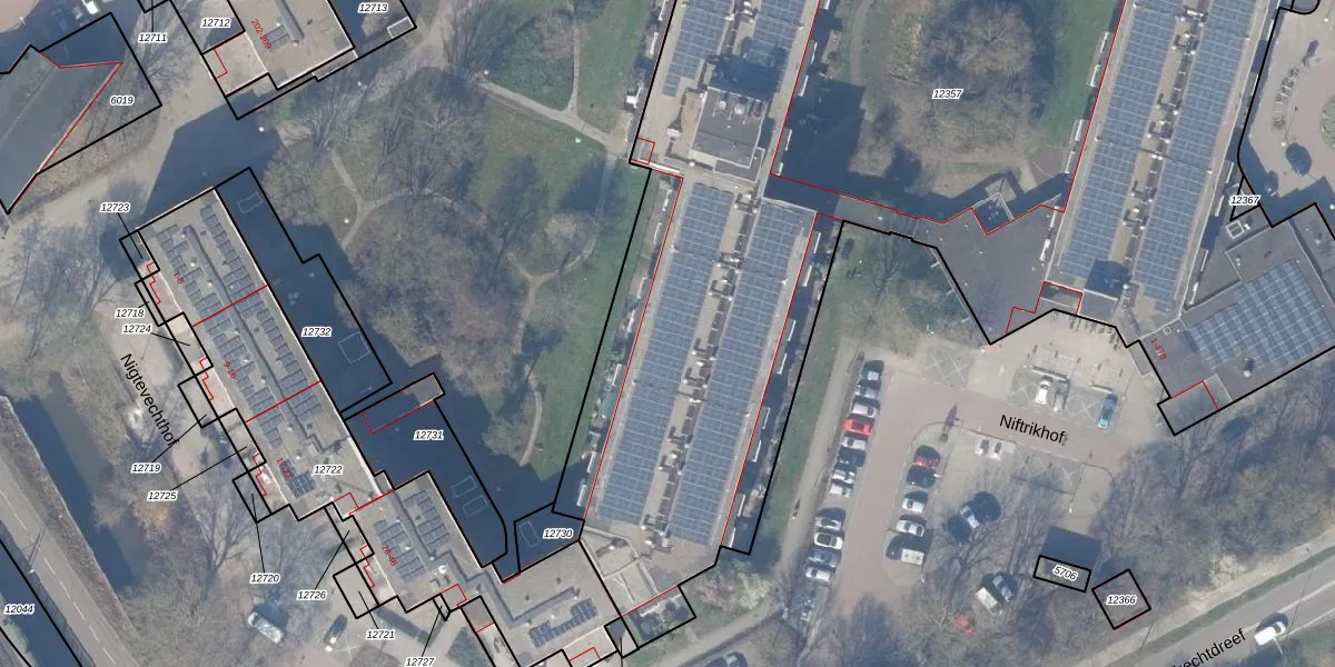 Het perceel waarop Niftrikhof 259 staat heeft een oppervlakte van 9513 m². Dit is een zeer groot perceel. De perceeloppervlakte wordt geregistreerd door het Kadaster. Gedetailleerde informatie over de maten van dit perceel kunt u vinden in het rapport Kadastrale kaart met maatvoering van Niftrikhof 259.