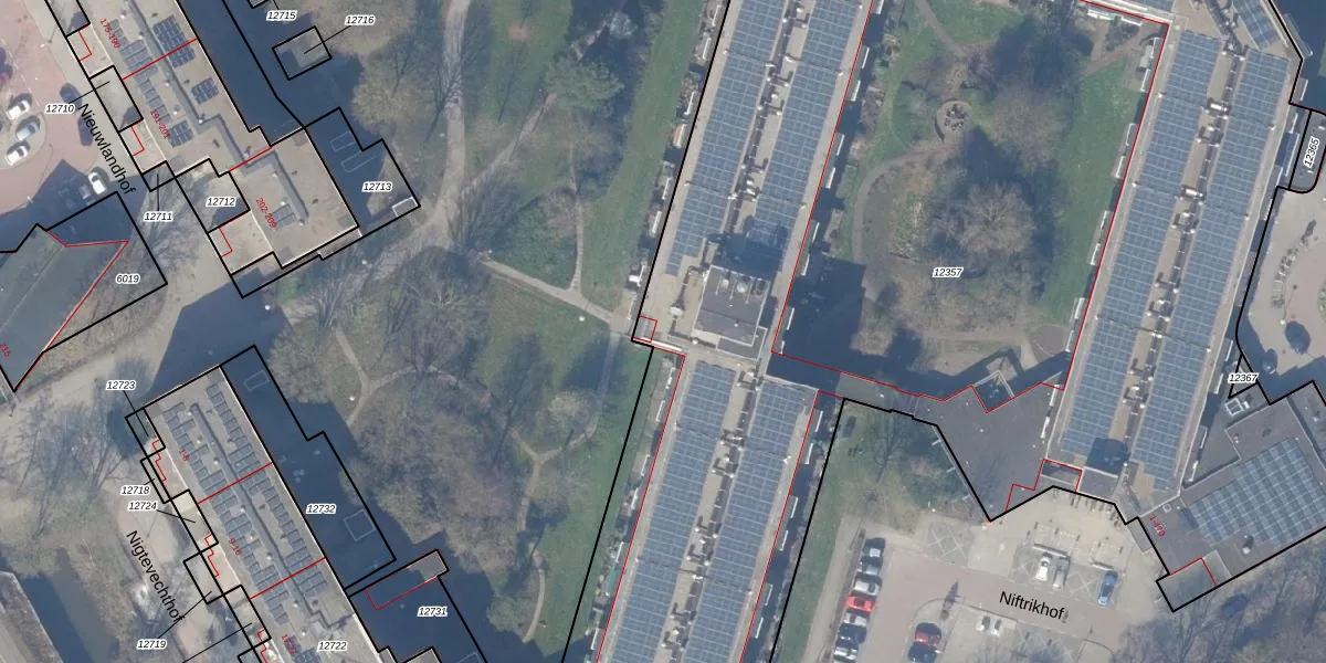 Het perceel waarop Niftrikhof 351 staat heeft een oppervlakte van 9513 m². Dit is een zeer groot perceel. De perceeloppervlakte wordt geregistreerd door het Kadaster. Gedetailleerde informatie over de maten van dit perceel kunt u vinden in het rapport Kadastrale kaart met maatvoering van Niftrikhof 351.
