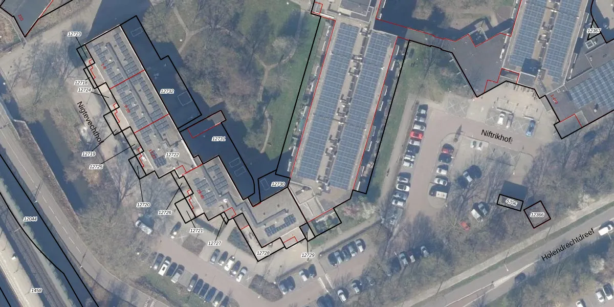 Het perceel waarop Niftrikhof 465 staat heeft een oppervlakte van 9513 m². Dit is een zeer groot perceel. De perceeloppervlakte wordt geregistreerd door het Kadaster. Gedetailleerde informatie over de maten van dit perceel kunt u vinden in het rapport Kadastrale kaart met maatvoering van Niftrikhof 465.