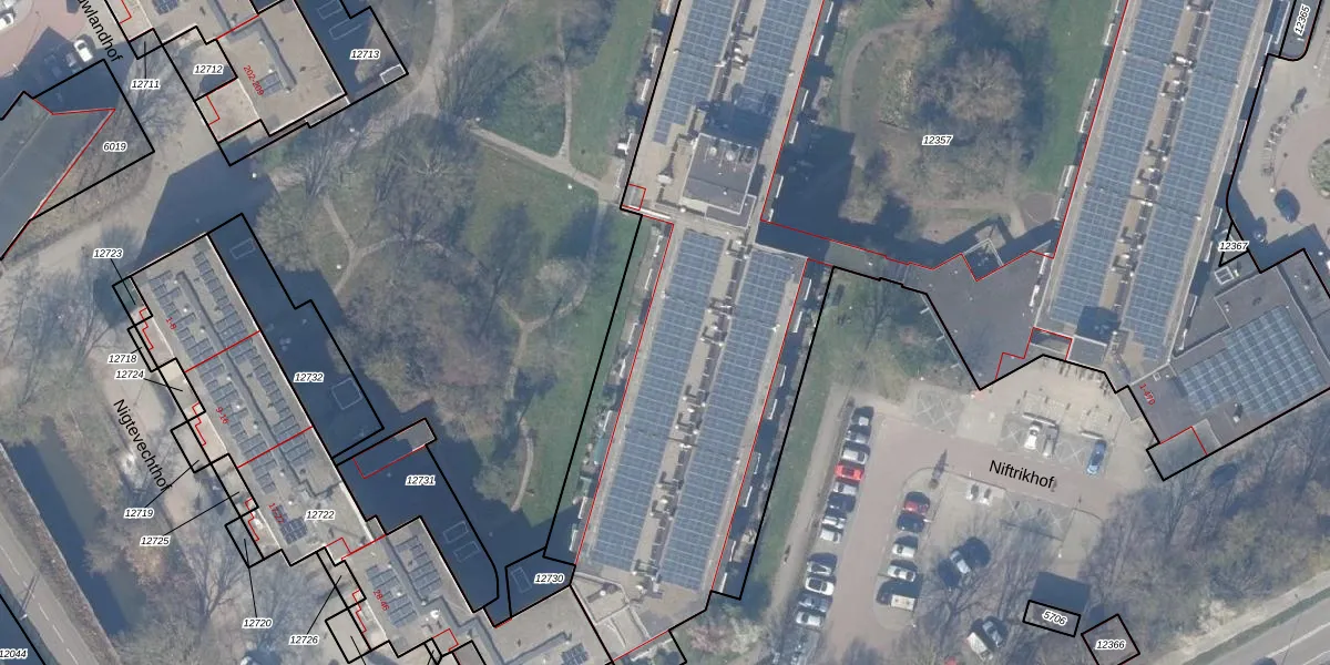 Het perceel waarop Niftrikhof 57 staat heeft een oppervlakte van 9513 m². Dit is een zeer groot perceel. De perceeloppervlakte wordt geregistreerd door het Kadaster. Gedetailleerde informatie over de maten van dit perceel kunt u vinden in het rapport Kadastrale kaart met maatvoering van Niftrikhof 57.