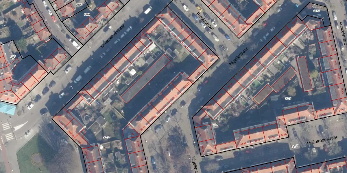 Het perceel waarop Nigellestraat 111 staat heeft een oppervlakte van 7017 m². Dit is een zeer groot perceel. De perceeloppervlakte wordt geregistreerd door het Kadaster. Gedetailleerde informatie over de maten van dit perceel kunt u vinden in het rapport Kadastrale kaart met maatvoering van Nigellestraat 111.