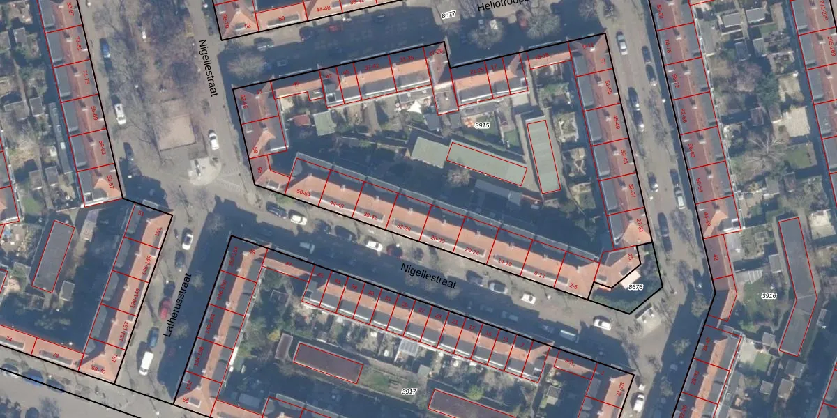 Het perceel waarop Nigellestraat 32 staat heeft een oppervlakte van 4158 m². Dit is een zeer groot perceel. De perceeloppervlakte wordt geregistreerd door het Kadaster. Gedetailleerde informatie over de maten van dit perceel kunt u vinden in het rapport Kadastrale kaart met maatvoering van Nigellestraat 32.