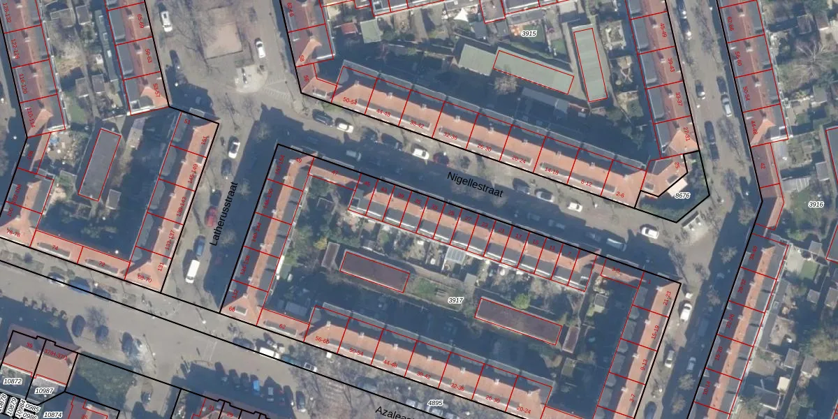 Het perceel waarop Nigellestraat 35 staat heeft een oppervlakte van 4342 m². Dit is een zeer groot perceel. De perceeloppervlakte wordt geregistreerd door het Kadaster. Gedetailleerde informatie over de maten van dit perceel kunt u vinden in het rapport Kadastrale kaart met maatvoering van Nigellestraat 35.