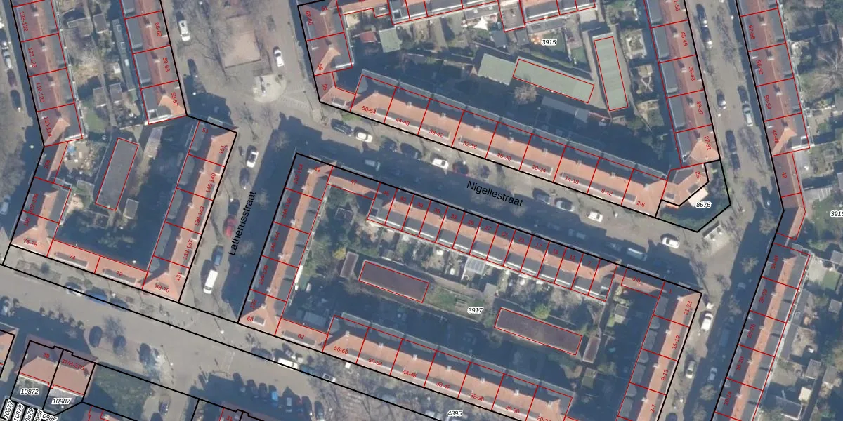 Het perceel waarop Nigellestraat 39 staat heeft een oppervlakte van 4342 m². Dit is een zeer groot perceel. De perceeloppervlakte wordt geregistreerd door het Kadaster. Gedetailleerde informatie over de maten van dit perceel kunt u vinden in het rapport Kadastrale kaart met maatvoering van Nigellestraat 39.