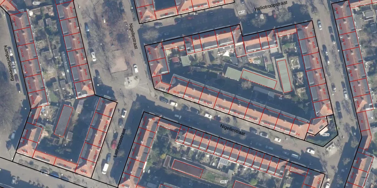 Het perceel waarop Nigellestraat 48 staat heeft een oppervlakte van 4158 m². Dit is een zeer groot perceel. De perceeloppervlakte wordt geregistreerd door het Kadaster. Gedetailleerde informatie over de maten van dit perceel kunt u vinden in het rapport Kadastrale kaart met maatvoering van Nigellestraat 48.